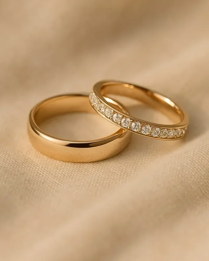 Symbolise your unity with coordinating bands designed for both partners. Each pair can be customised in width, finish, and gemstone detail for a personal touch.